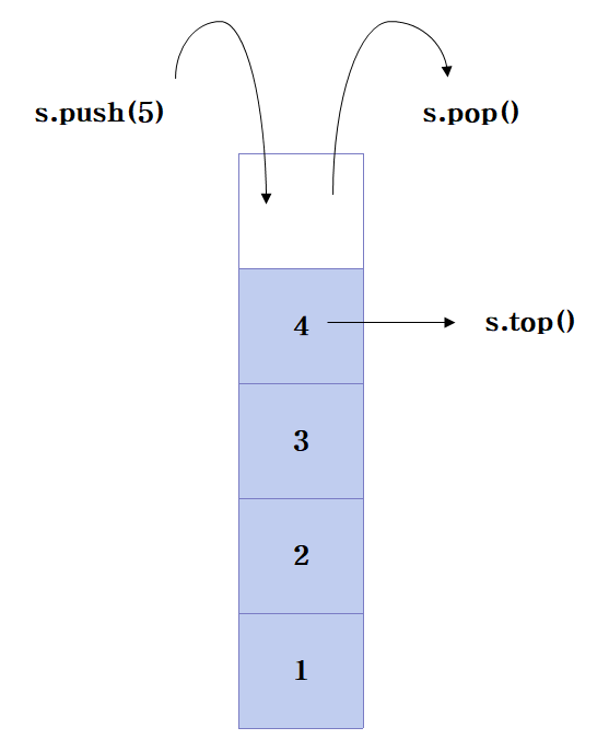 | s.top() | 스택에 가장 나중에 들어온 데이터 반환 |