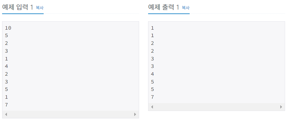 N개의 수가 주어졌을 때, 이를 오름차순으로 정렬하는 프로그램을 작성하시오.