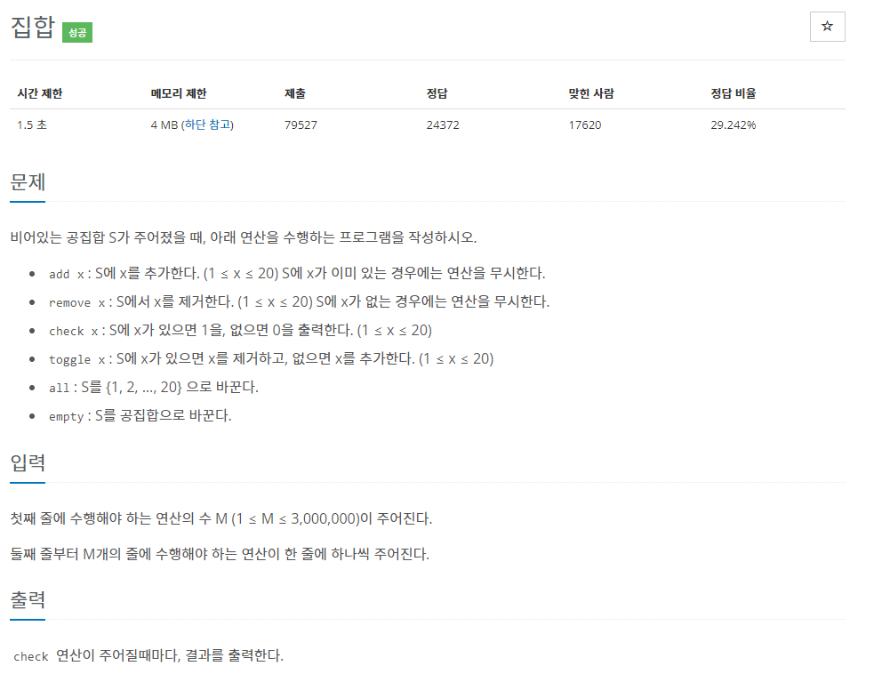 비트연산을 이용하면, 원하는 숫자에 해당하는 인덱스의 비트를 0 또는 1로 표현하면서 집합을 구현해낼 수 있다.