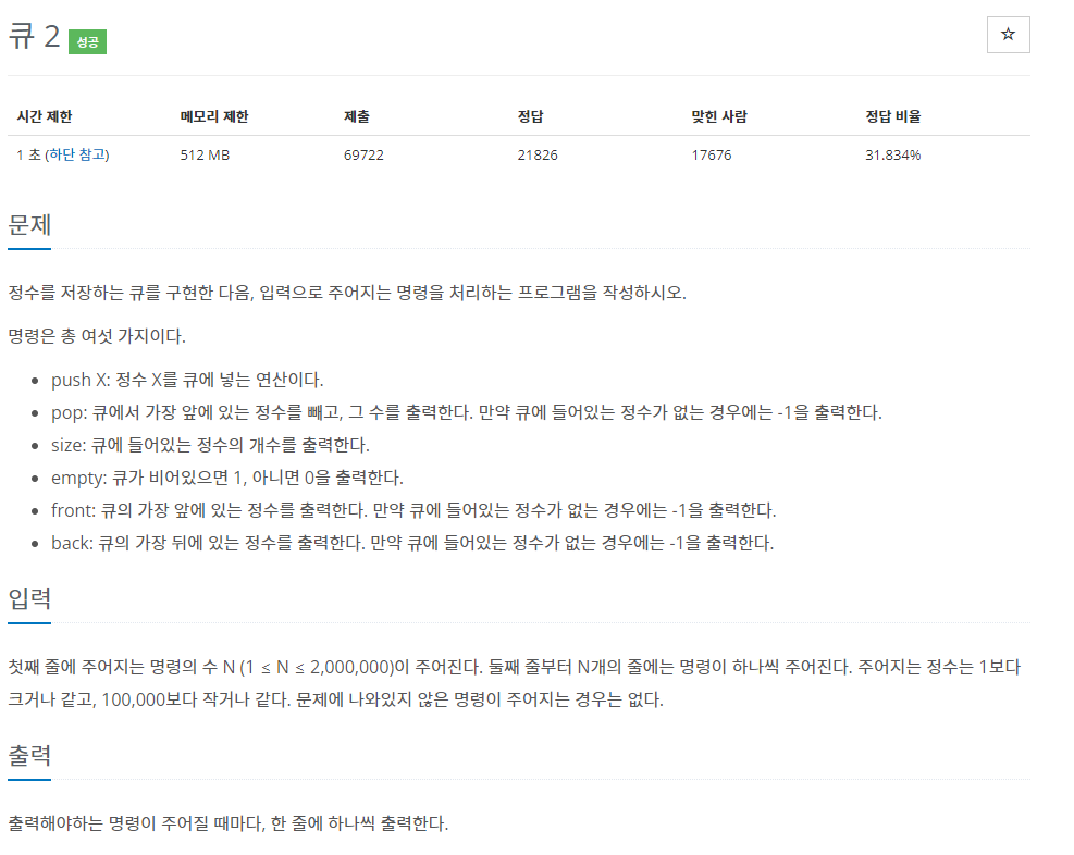 문제 링크: https://www.acmicpc.net/problem/18258