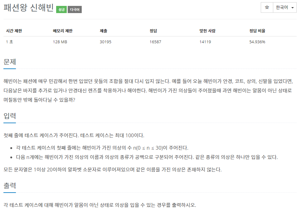 알고리즘 분류: 수학, 자료 구조, 조합론, 해시를 사용한 집합과 맵
