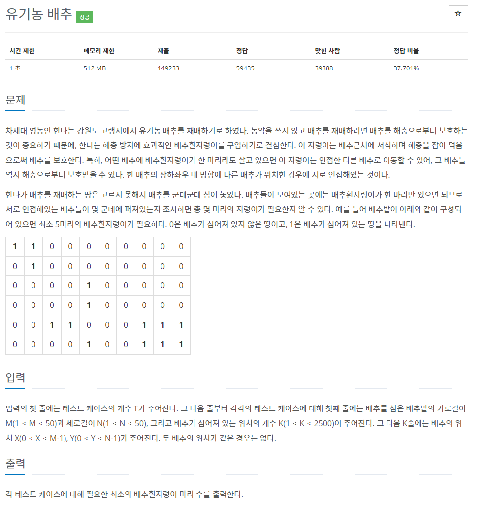 문제 링크: https://www.acmicpc.net/problem/1012