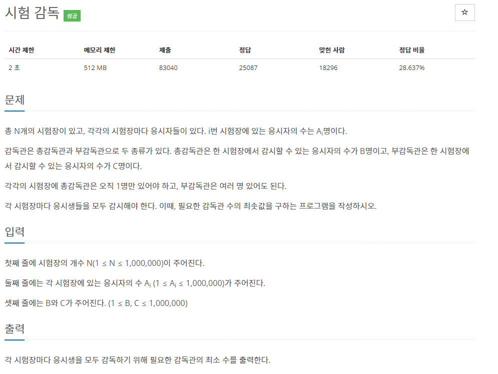 부감독관은 시험장 사람 수에서 B를 뺀 값에서 C를 나눈 값이다.