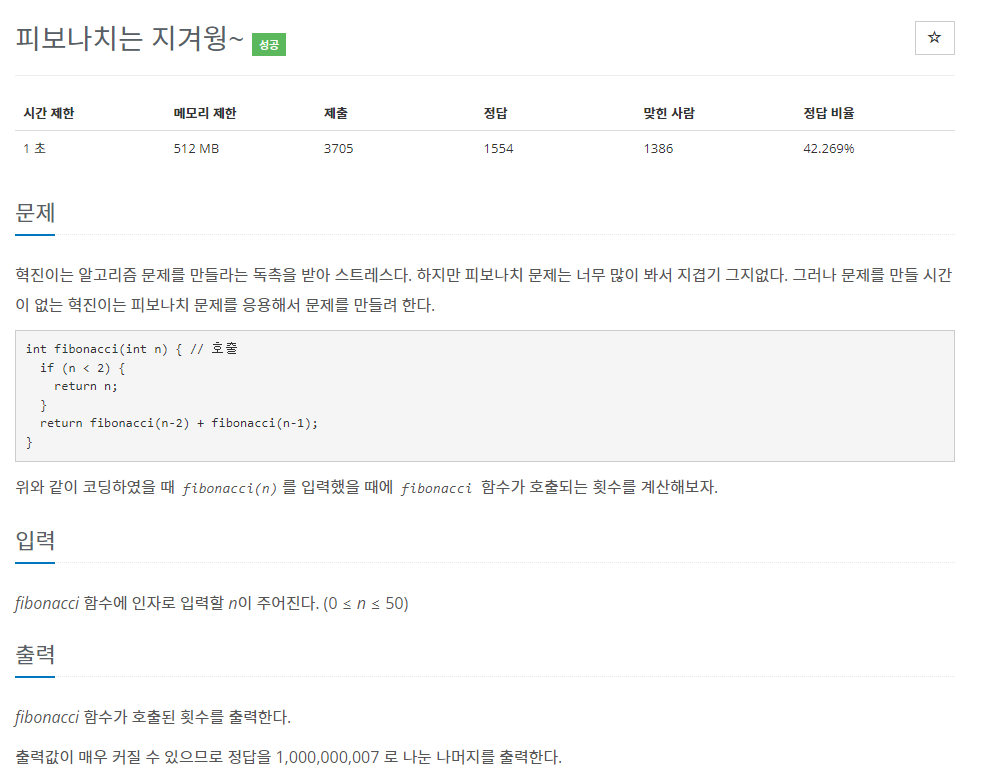 하지만 그 횟수 출력으로 우리가 따로 횟수를 확인해 규칙을 찾고 점화식을 도출해 동적계획법으로 해결하면 된다.