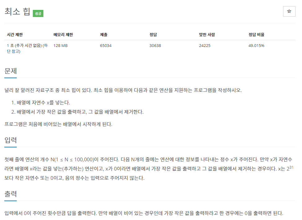 문제 링크: https://www.acmicpc.net/problem/1927