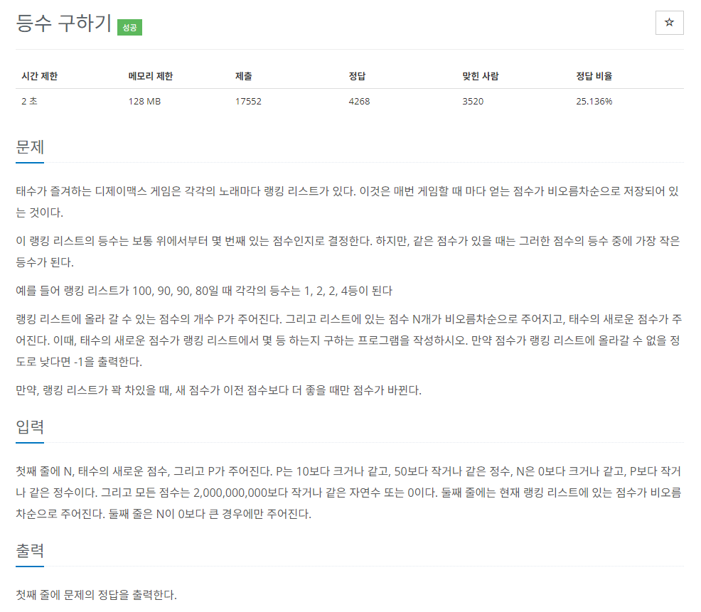 // 1. 랭킹을 순회할 때 기존 점수보다 새로운 점수가 작으면 +1