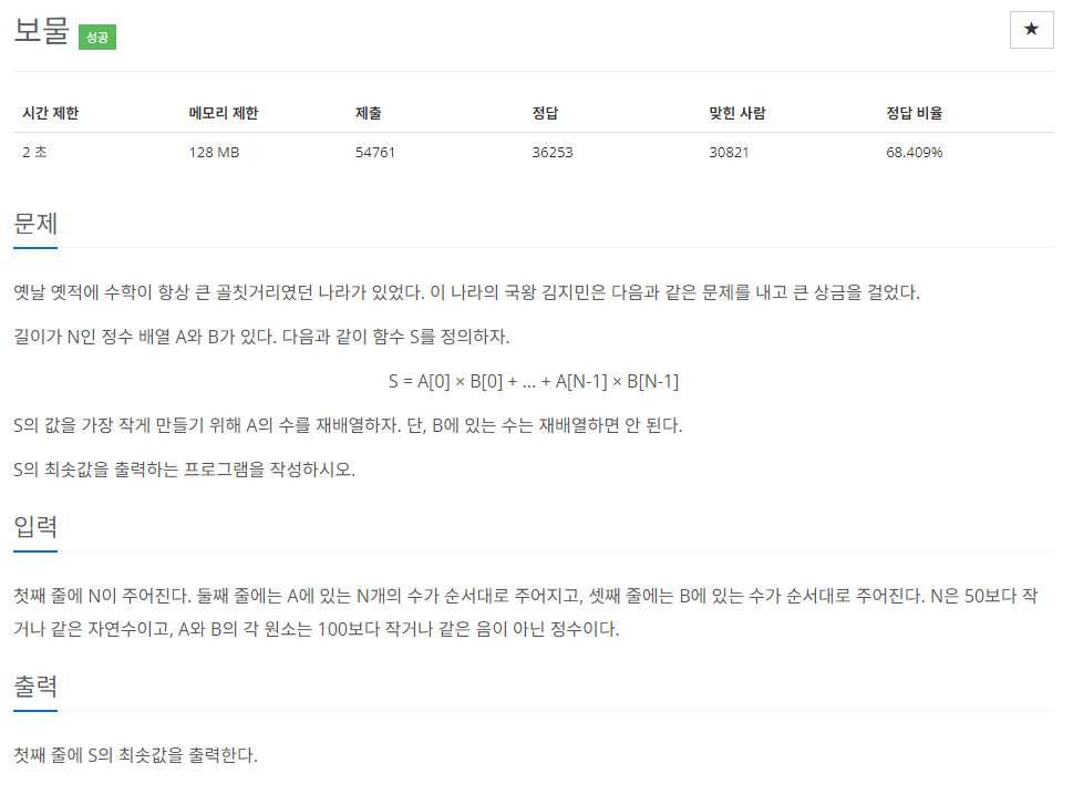 문제 링크: https://www.acmicpc.net/problem/1026