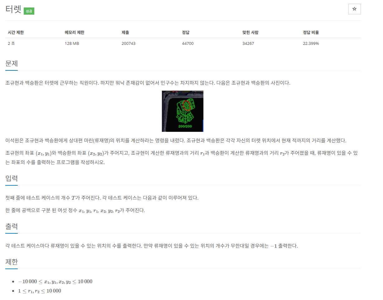 문제에서 말하는 조규현과 백승환의 좌표는 원의 중심이라고 볼 수 있고,