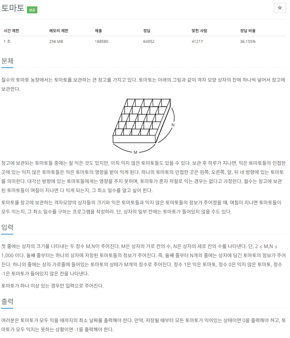 문제 링크: https://www.acmicpc.net/problem/7576